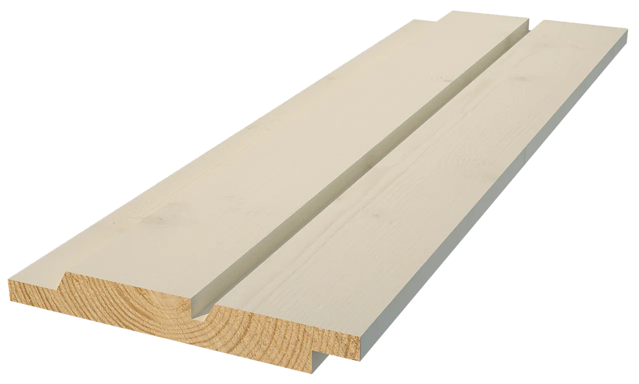 Dobbelfals 60 grader kledning med spor i gran kombinerer kvalitet og stil. Denne kledningen er grunnet med Jotun Visir og malt ett strøk i fabrikk med Jotun Industri DRYGOLIN Nordic Extreme, som gir opptil 5 år mellom hvert strøk. Det unike med denne varianten er sporet på midten som gir illusjonen av to smale kledningsbord, noe som gir et moderne uttrykk. Den kan monteres både stående og liggende, men er mest brukt liggende. Takket være Jotun DRYGOLIN Nordic Extreme's Extreme-teknologi, får du også overlegen beskyttelse og ekstrem farge- og glansholdbarhet, samt selvrensende egenskaper.