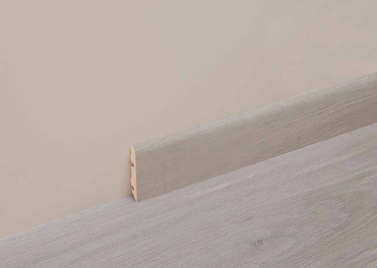 NOBB 45486586 - Artikkelnummer 101145962Sokkellist 14/60 2400 mm eik myk grå