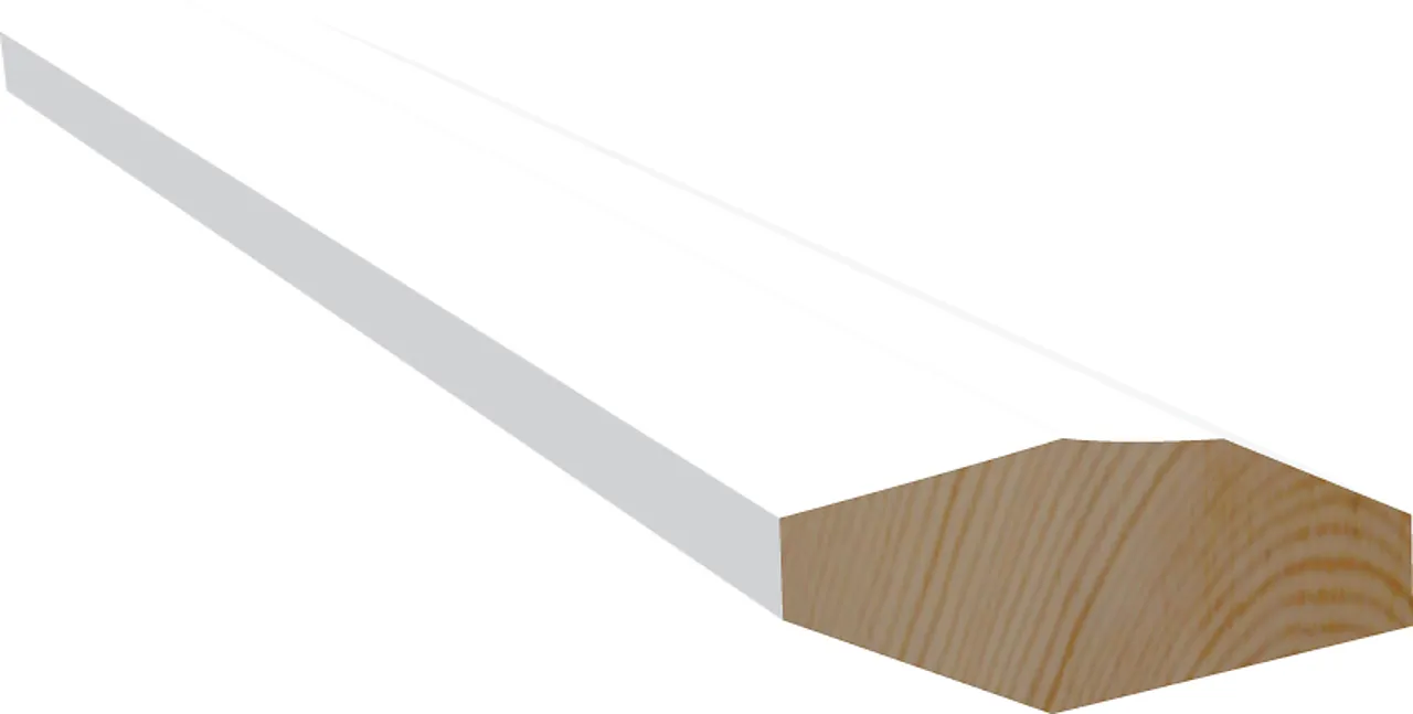 NOBB 51569185 - Artikkelnummer 101202010Taklist furu skrå hvit bomull S0502-Y 15x40x4400 mm