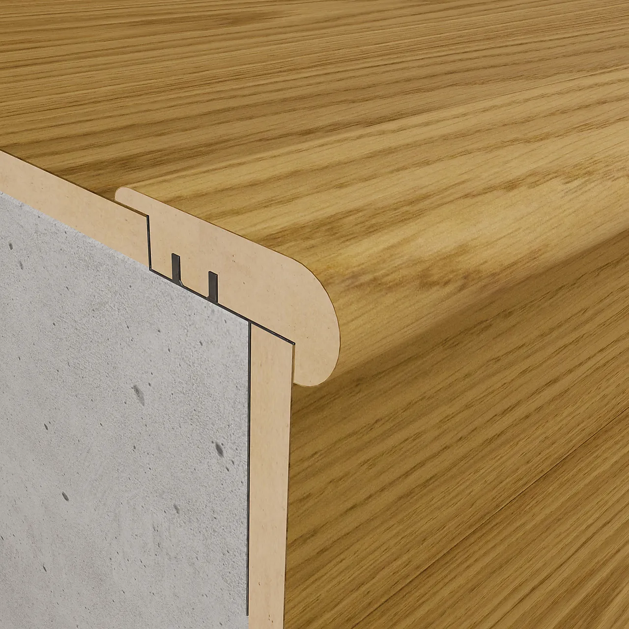NOBB 58037064 - Artikkelnummer 101379055Trappenese eik mattlakkert finér med brakett 2,42 meter varmgrå