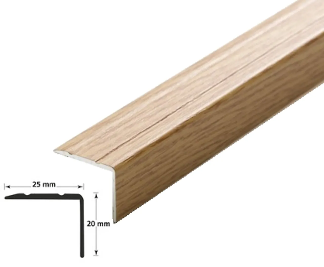 NOBB 41692942 - Artikkelnummer 101131596Trappenese nr 9.1 selvklebende aluminium 1 meter eik hvit