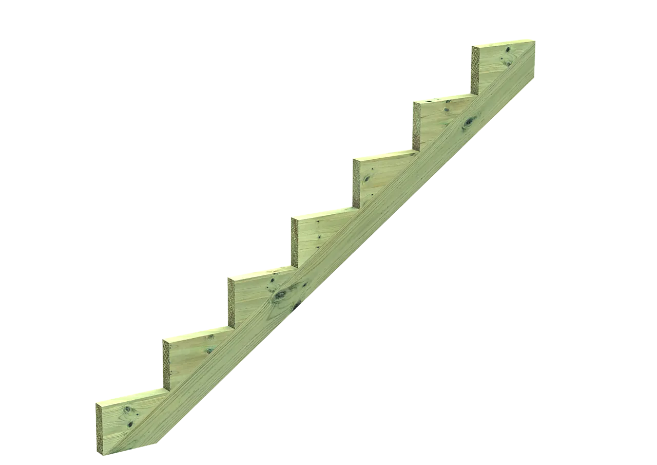 Trappevange for rask montering av trapp utendørs. En del av Talgøs KJAPPTRAPP. CU-impregnert i klasse A for jordkontakt. Anbefalt behandling: MøreRoyal vedlikeholdsoljer. Velg antall trinn etter behov. Impregnerte trappevanger er essensielle for utendørs trapper, og deres formål er å gi solid støtte og struktur til trappen mens den tåler påkjenning fra vær og bruk. Disse vangene er behandlet med impregneringsmidler som gir dem motstand mot råte, fuktighet og insektsangrep. Impregnerte trappevanger brukes ofte i kombinasjon med trinn laget av ulike materialer som tre, stein eller kompositt for å skape sikre og funksjonelle utendørs trapper. De er et viktig element for både estetisk appell og sikkerhet når man bygger trapper til uterom som hager, terrasser eller verandaer.