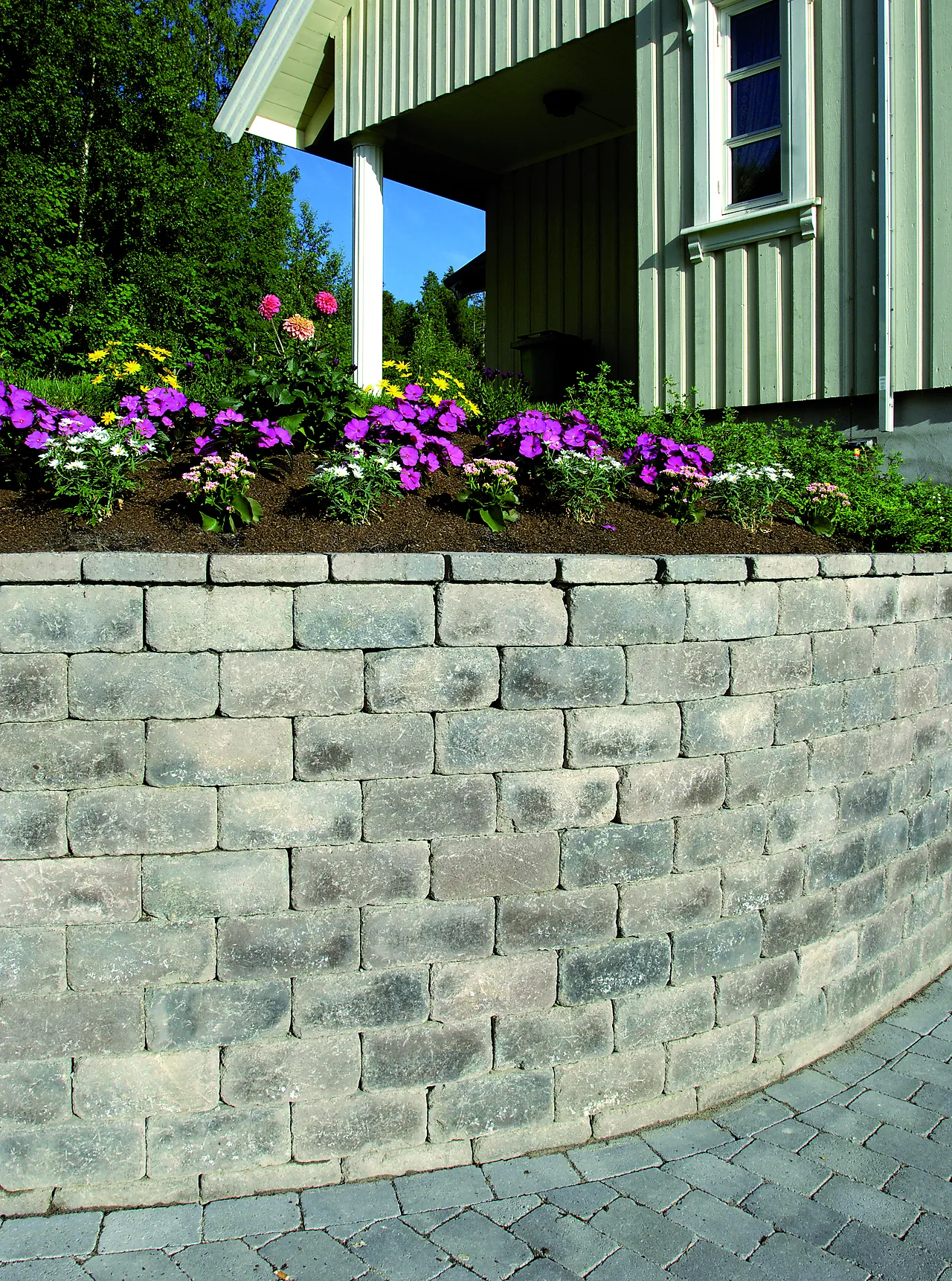 Rådhus støttemur fra Aaltvedt, del inn tomten din i ulike områder, lag avskjerming mot naboen, skill av i ulike platåer, mulighetene er mange. Steinen er tromlet og egner seg derfor til dekorativ bruk i støttemur, dekke og trapper. Steinen er en del av et fleksibelt og patentert mursystem. Steinene har buede kanter. Støttemuren kan være loddrett som et gjerde eller settes skrått mot terrenget. Støttemuren har en patentert låsemekanisme Geoloc som både sørger for feste mellom blokkene og innfesting av jordarmeringsnett.