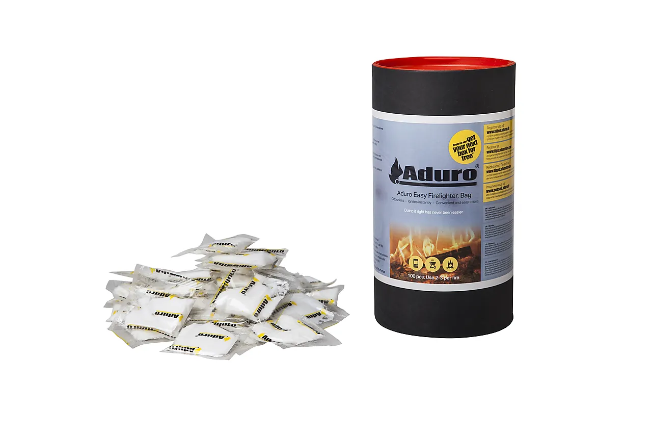 Med Aduro Easy Firelighter tennposer er det enkelt å tenne opp i peisen og grillen uten ubehagelig lukt. Fordel 2-3 tennposer mellom veden eller kullet og tenn på de forseglede tennposene som brenner 7-10 minutter. Folien anvendes som lunte og tennes på i hjørnet.