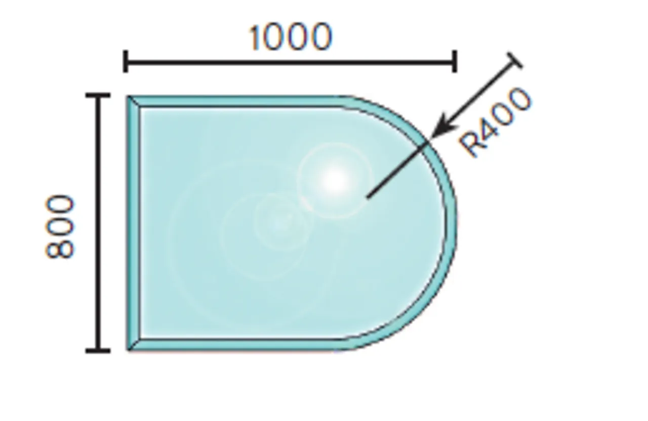 NOBB 29843893 - Artikkelnummer 101140645Gulvplate glass 900 x 1090 mm radie på sirkel fasett