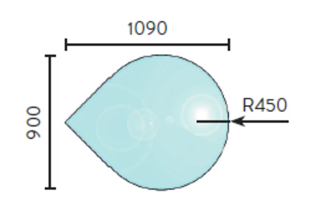 Gulvplate glass 900 x 1090 mm radie på sirkel