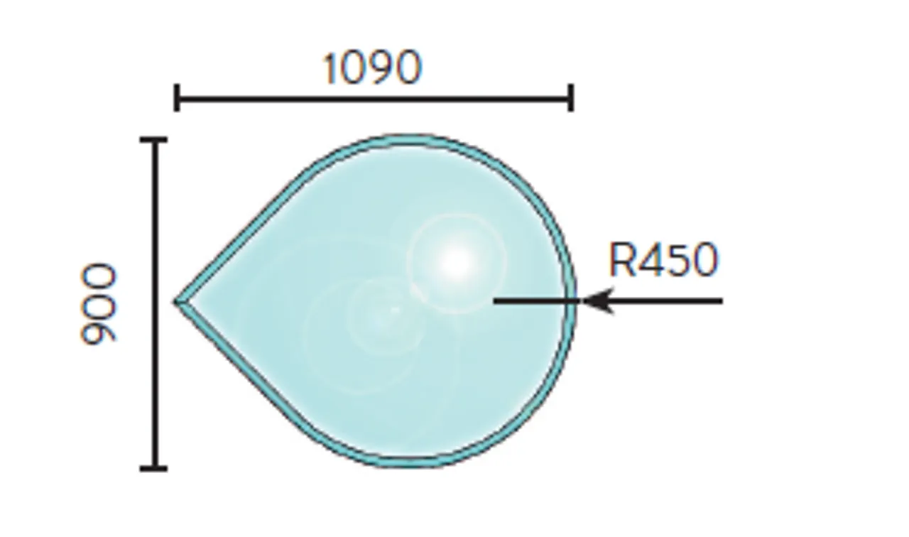 Gulvplate glass 900 x 1090 mm radie på sirkel fasett