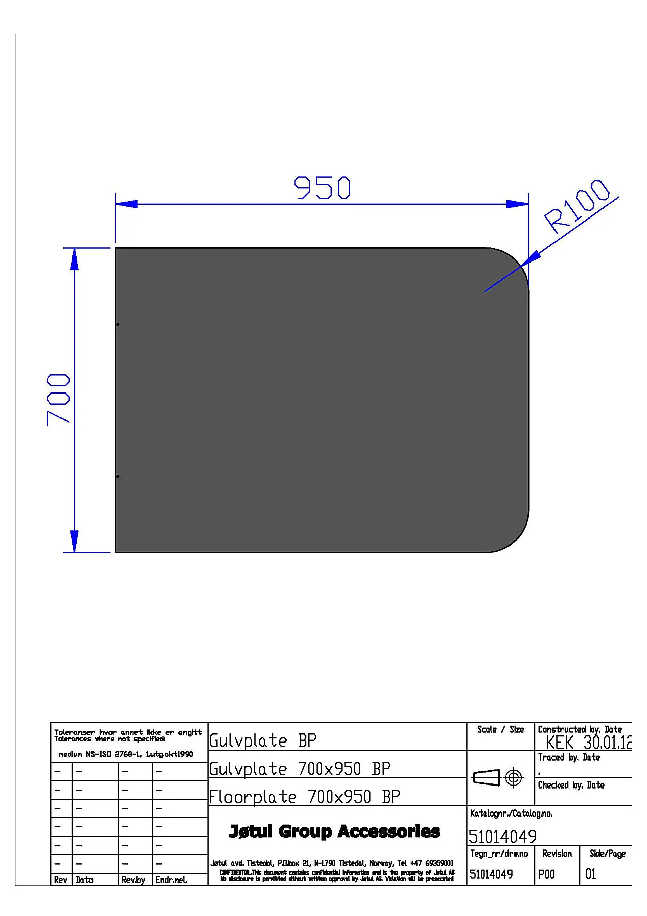 NOBB 29312121 - Artikkelnummer 101108191Gulvplate stål sort 700 x 950 mm radie på avrundede hjørner