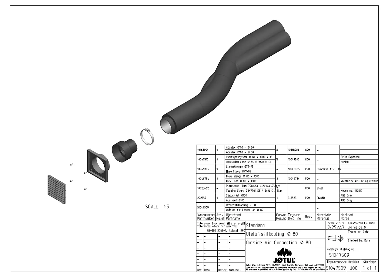 Kobling for friskluft Ø80 mm x 1 meter