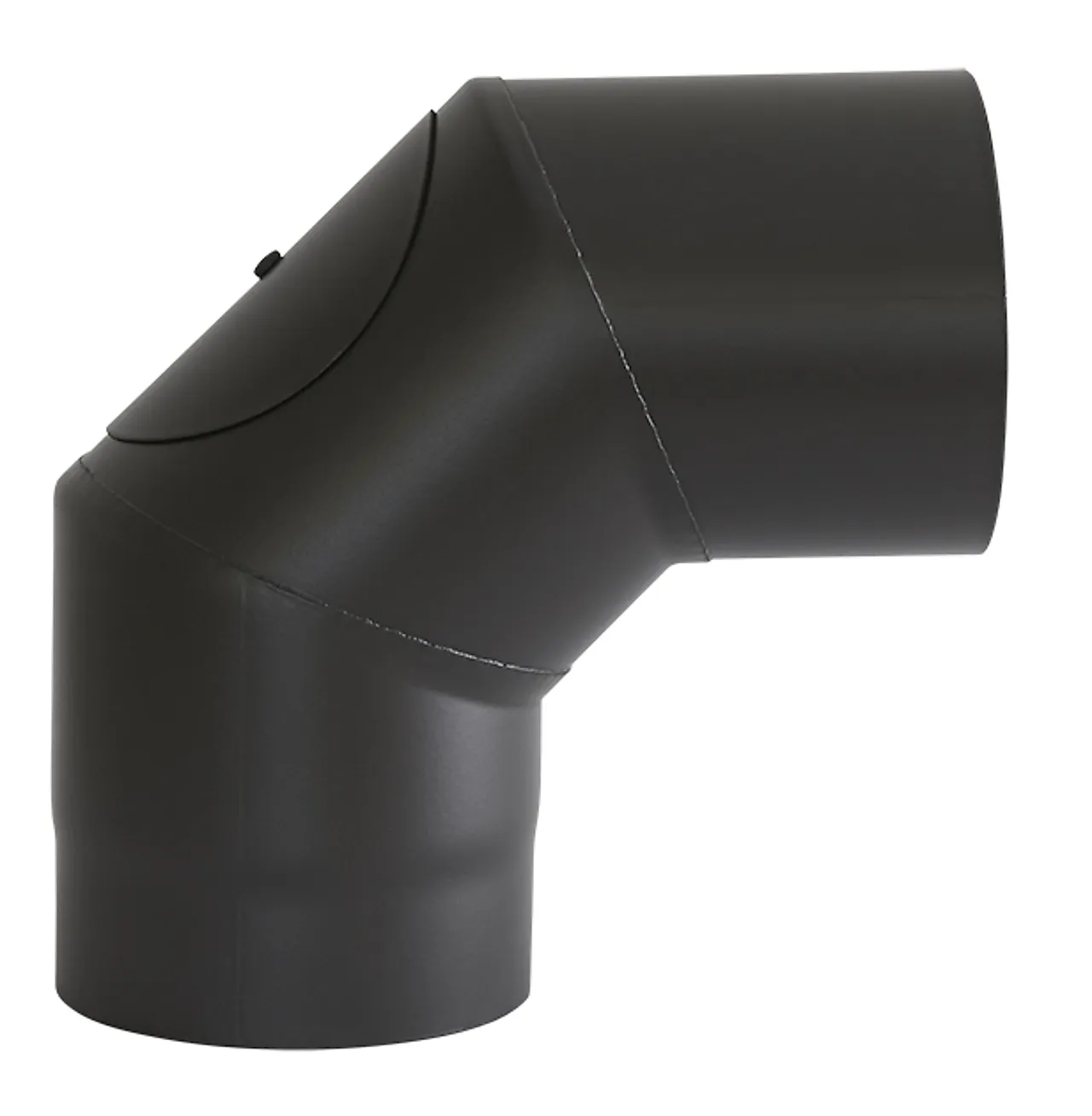 Røykrør kne Ø150 mm 90° 3-delt med luke