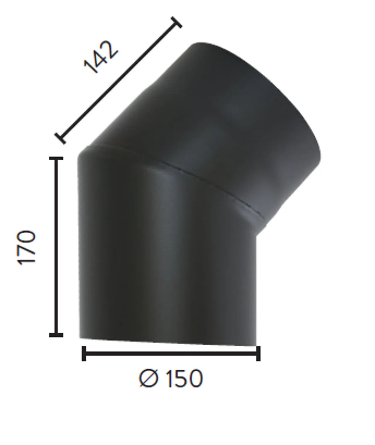 NOBB 42210314 - Artikkelnummer 101136399Røykrør ø 150x170x142 mm 45Grader sort matt emalje 2,3 mm