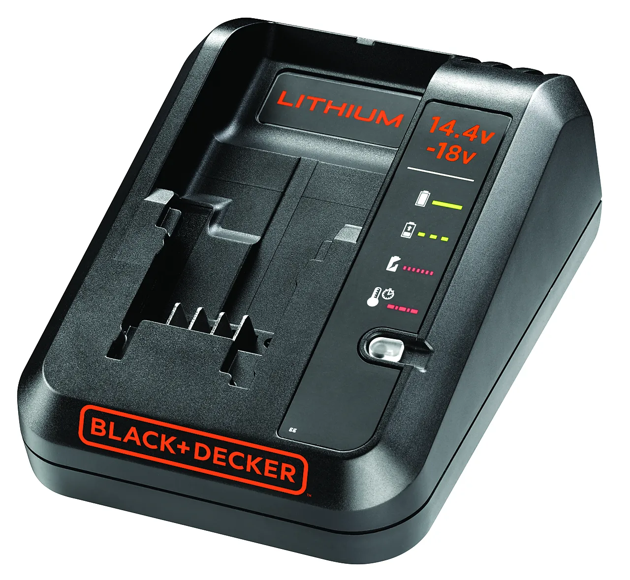 Hurtig lader. En del av 18V Li-Ion systemet. Kompatibel med 14.4V og 18V Black & Decker Li-Ion Batteripakker