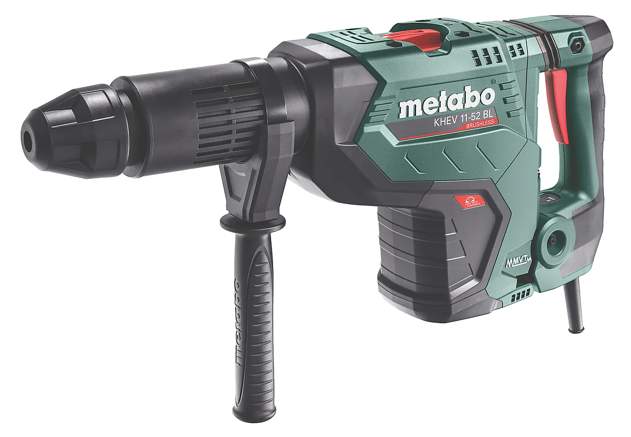 Kombihammer khev 11-52 bl. EN ELEKTROPNEUMATISK BORHAMMER FRA METABO ER ALLTID DET RIKTIGE VALGET HVIS DET SKAL BORES HULL I HARDE MATERIALER SOM STEIN ELLER BETONG OG DET OGSÅ MÅ UTFØRES MEISLINGSARBEIDER. DEN PNEUMATISKE SLAGMEKANISMEN GENERERER SALG MED HØYT ENERGIINHOLD NESTEN UTEN PRESSKRAFT OG DISSE DRIVER DET INNSATTE BORET ELLER DEN INNSATTE MEISELEN INN I BETONG.BORHAMMEREN TRENGER BOR FEKS BOR MED SDS-PLUS ELLER SDS-MAX TANGE SOM ER TILPASSET MASKINENS HØYE SLAGKRAFT.