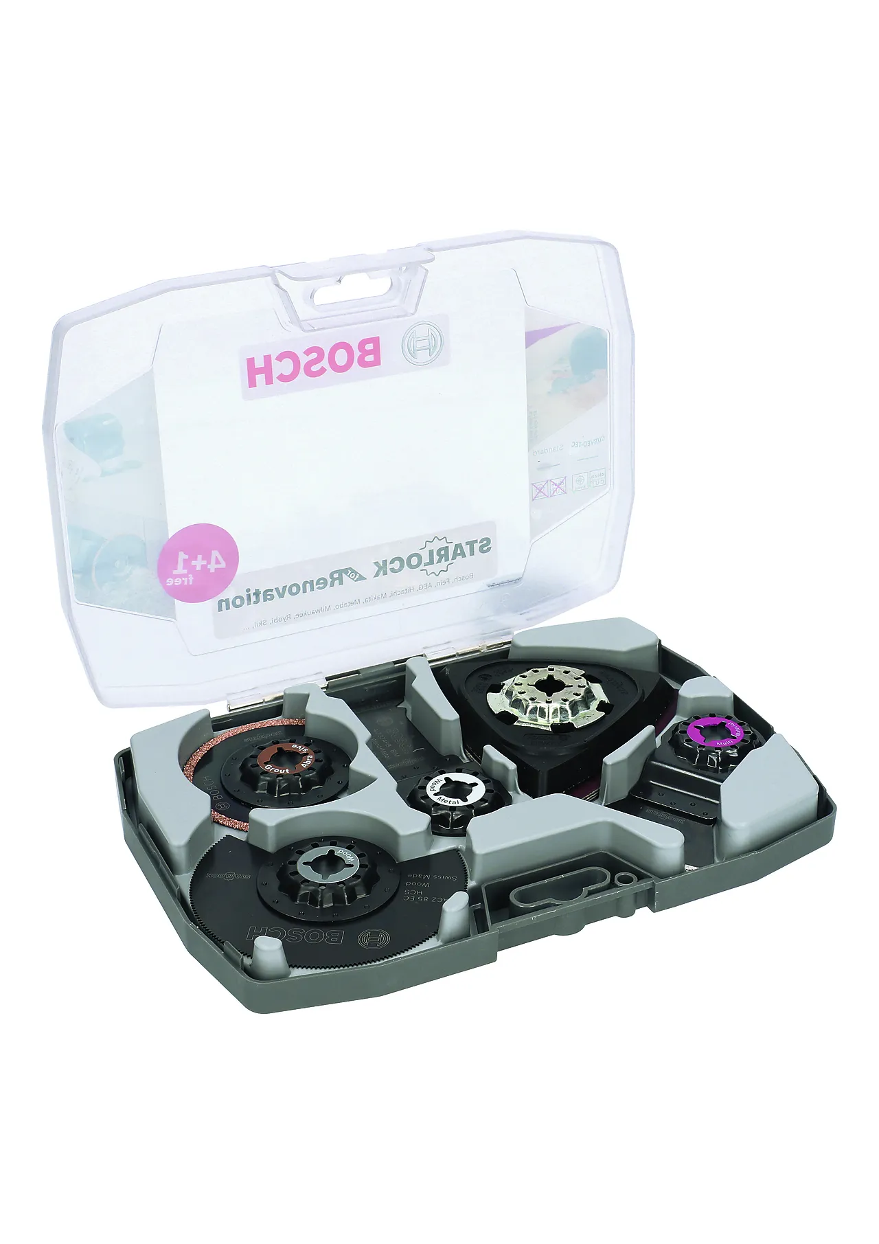 Starlock best of cutting-settet med 8 deler tilbyr en rekke blader som er nødvendige for alle oppgaver i tre og metall. Inneholder blader med lengre levetid til alle typer skjærejobber. Starlock snap-in-festesystemet for rask fjerning og utskiftning av bladet i løpet av 3 sekunder uten å berøre bladet.