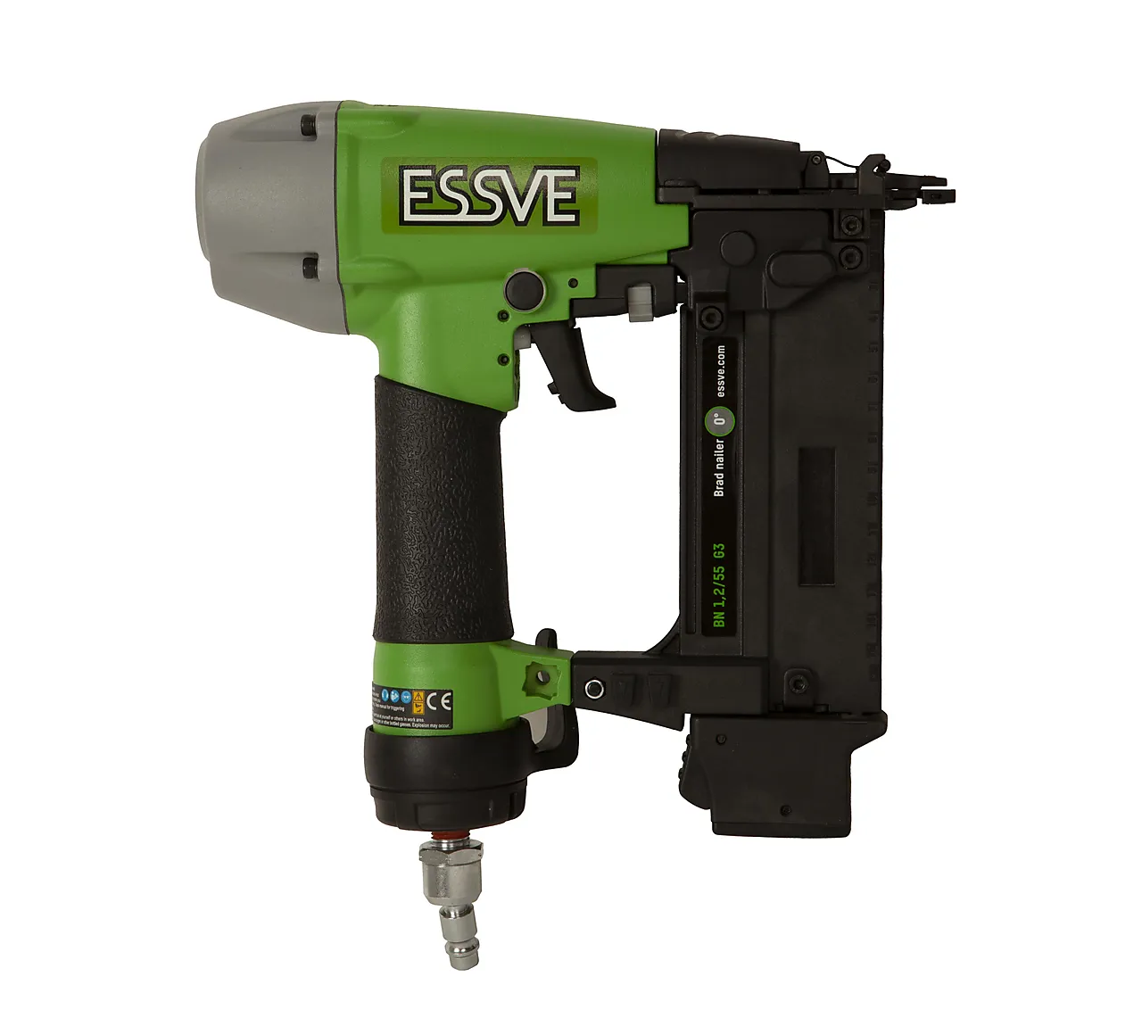 Dykkertpistol bn 1,2/55 luft f18. Liten og smidig dykkertpistol med forbedret nese som gir mer presis plassering av dykkerten, samtidig som det er enkelt å komme til i hjørner og andre smale steder. Etterlater ingen merker i trevirket. Maskinkropp i magnesium, justerbart utblås og beltekrok. Maskinen har Euro svivelkobling med 360 graders rotasjon som forhindrer krøll på slangen, hurtigbryter for singel-/støtspikring. Fastkilt dykkert kan enkelt fjernes.
