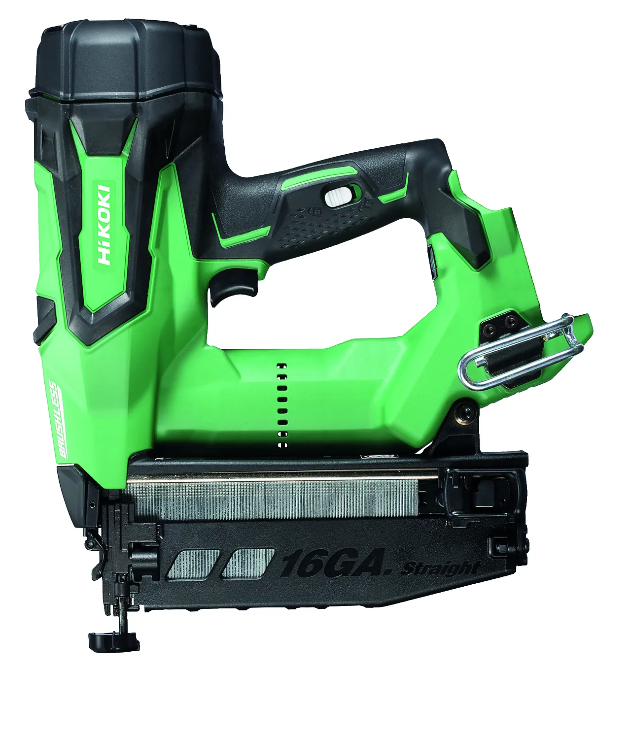 18V batteridrevet spikerpistol med høy ytelse og lav vekt. Den børsteløse motoren gir ikke bare lengre driftstid, men forlenger også maskinens levetid. Med en imponerende kapasitet på opptil 1500 spiker per lading med 3,0 Ah batteri, er denne pistolen både rask og effektiv. Den krever minimalt med vedlikehold (i motsetning til gasspistoler), gir stabil ytelse uansett arbeidstemperatur, og mulighet for lading i et temperaturområde fra 0°-40°. Du kan velge mellom singel- eller serieskuddsavtrekker med rask responstid, og justerbart innslag sikrer presisjonsspikring med perfekte resultater. Det moderne designet inkluderer et sklisikkert gummibelagt grep for komfortabel håndtering. Enkel verktøyfri dybdejustering og praktisk beltekrok gir ekstra bekvemmelighet under arbeidet. Integrert LED-lys effektivt belyser arbeidsområdet, mens batteriidikatoren gir klar informasjon om gjenværende strømnivå. Denne spikerpistolen er kompatibel med HiKOKI Li-ion 18V slide batteriserie og leveres med panelfot.