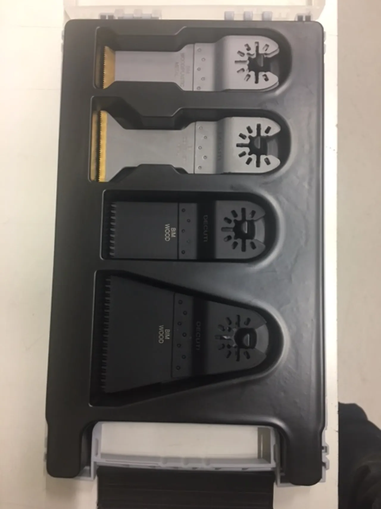INNEHOLDER 2X30MM TITANUM 2X44MM TITANIUM 2X32MM JAPANCUT TREBLAD OG 2X64MM JAPANCUT TREBLAD PLASS TIL 5 STK SAGBLADER I HVERT KAMMER SOM GJØR DEN PRAKTISK SOM OPPBEVARING