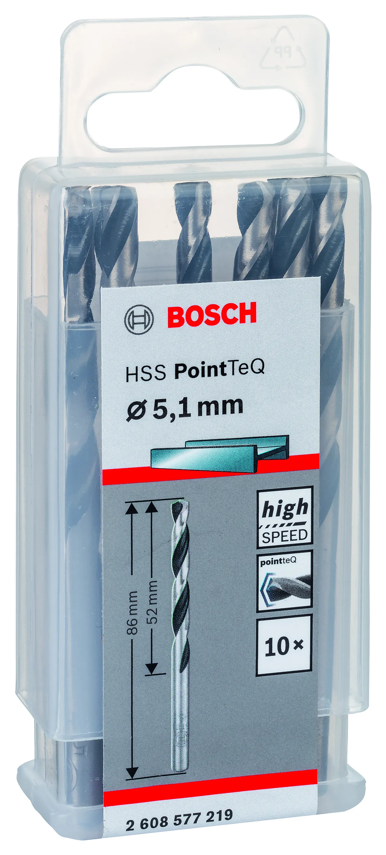 HSS-spiralboret gir rask boring i metall takket være spissen med PointTeQ-utforming. Det sikres økt borehastighet, som genererer både mindre varme og slitasje. Spissen med PointTeQ-utforming holder seg skarp og sikrer jevn holdbarhet. Det er dessuten liten fare for brudd, særlig for bor under 6 mm i diameter, siden boret er fremstilt med en svært elastisk base. Den sortoksiderte noten sikrer rask sponfjerning. HSS-spiralboret PointTeQ er produsert i henhold til DIN 338. Det har et sylinderformet skaftsystem og er beregnet på bruk i drillstativer og driller. Den sylindriske tangen er videre kompatibel med drillchucker med tre kjever. Passer til verktøy fra de fleste merker.